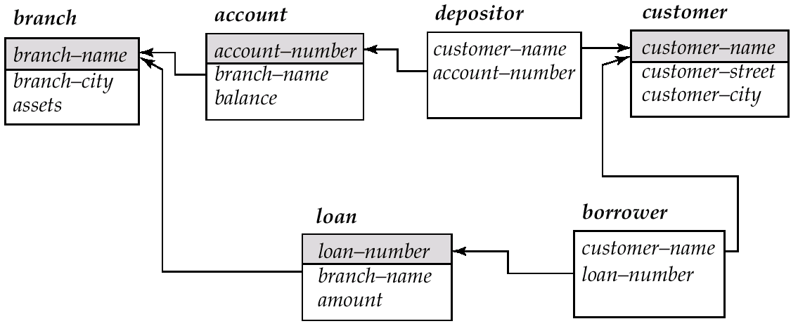 - borrower(customer-name, loan-number)
